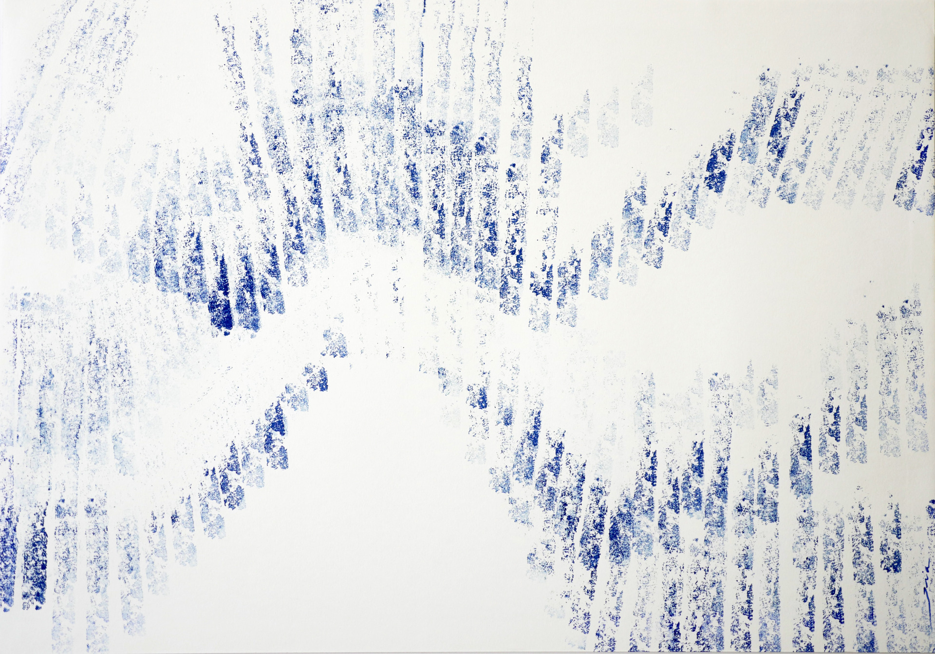 ATRITO #7 2024 Atrito series . blue ink on paper, with stamps made of portuguese cork Série Atrito . tinta azul sobre papel, com carimbos feitos de cortiça portuguesa 0.42 x 0.60m to 0.50 x 3 m